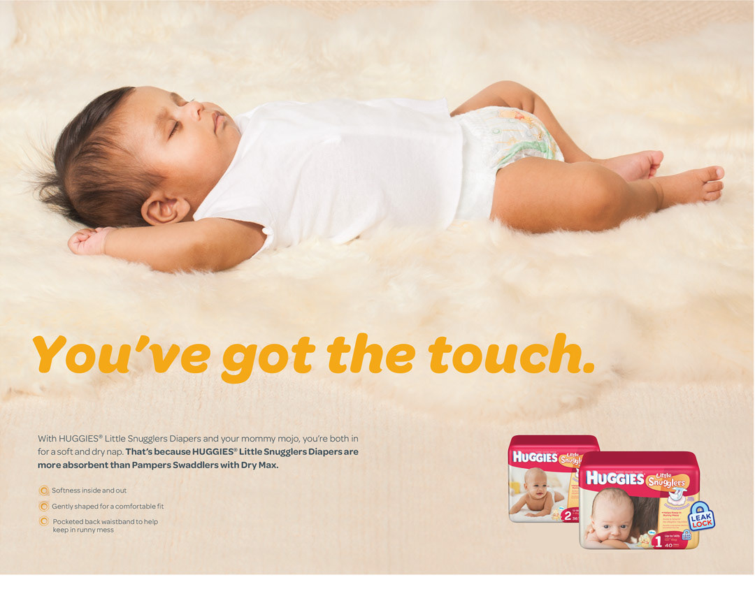 Huggies has a huge portfolio of products. Sometimes they like to tell people about some of the nicer features of their products. Sometimes they asked me to help come up with a cheeky way to introduce those features. Here are some examples I like.