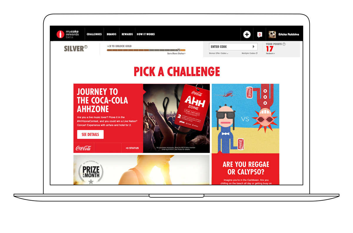 Coca-Cola had a highly successful loyalty rewards program. The problem was, the relationship with consumers was one-dimensional — tied solely to the cash register. You earn points. You spend points. So what would a loyalty program look like that was as much about passion as product? Working with our agency partners, we developed a new kind of brand experience that rewards people for doing the things they love with the brands they love.
